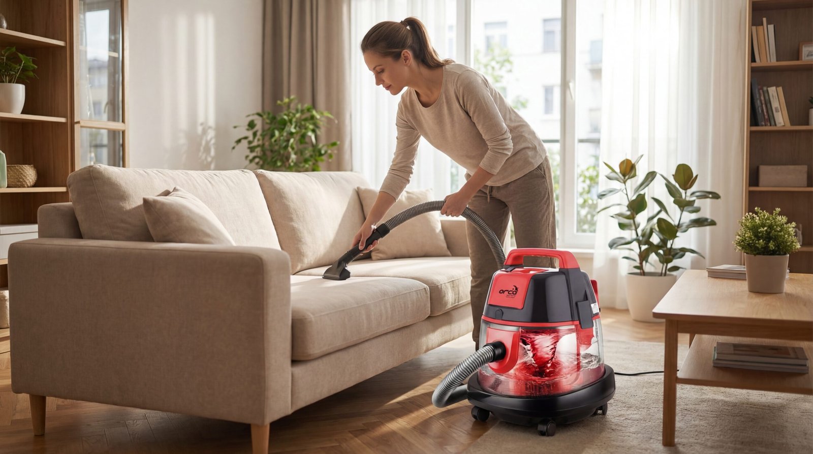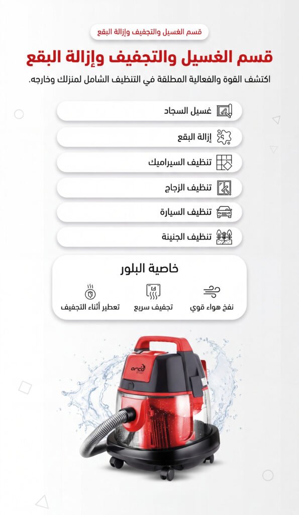 في قسم التنظيف الجاف من أوركا، أنتِ لا تحصلين على مجرد شفط عادي للغبار، بل على نظام تنظيف عميق يعتمد على قوة شفط عالية مدعومة بتقنية الفلترة بالماء، مما يضمن سحب الأتربة الدقيقة، وشعر الحيوانات، وبقايا الغبار العالقة داخل الأنسجة وليس فقط على السطح.